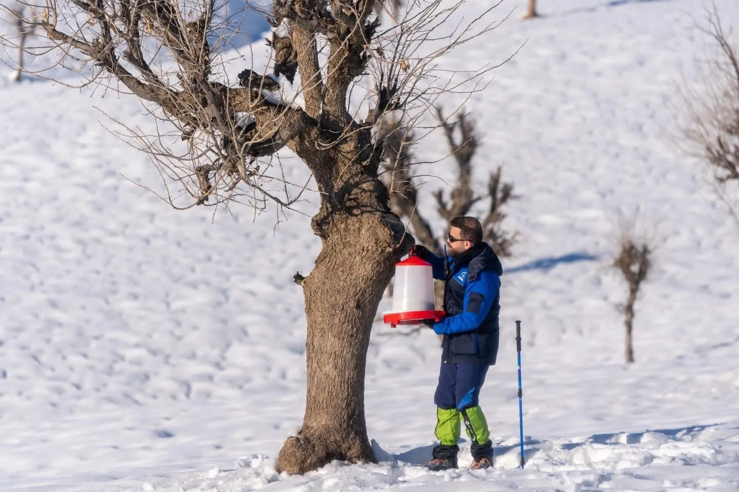 في ثلوج سوران.. "روانگە" تطلق حملة لتوفير الغذاء للطيور والحيوانات البرية (صور)