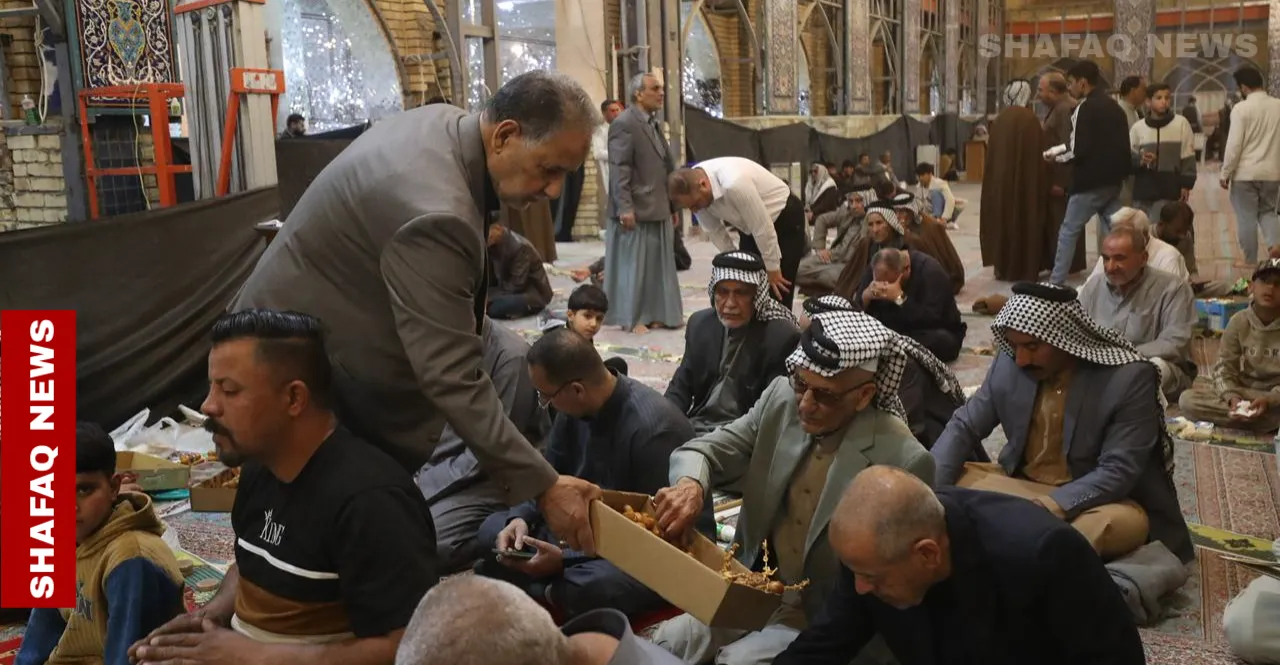 وزارت عدسة وكالة شفق نيوز المرقد ووثقت تجمع الزائرين استعداداً لوجبة الإفطار، فيما بادر متطوعون إلى توزيع التمور والماء والطعام على الصائمين، في مشاهد روحانية واجتماعية تعكس أجواء التكافل والتقارب بين العوائل العراقية خلال أيام الشهر الفضيل، حيث يحرص الكثيرون على إحياء الشعائر الدينية وتناول الإفطار في الأماكن المقدسة.