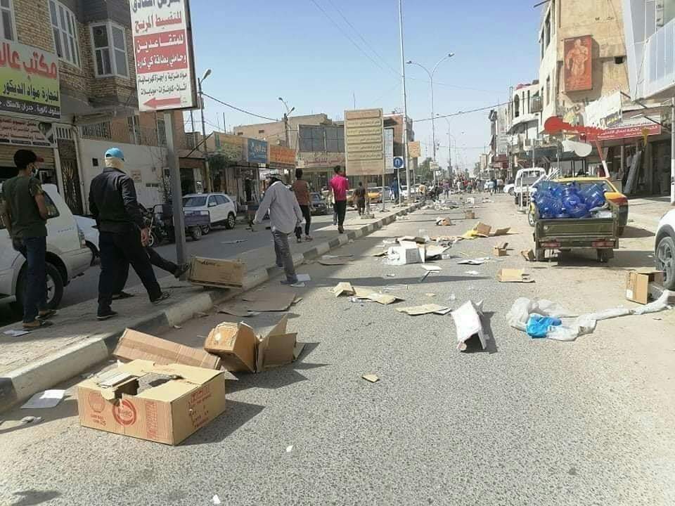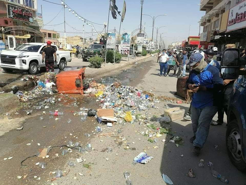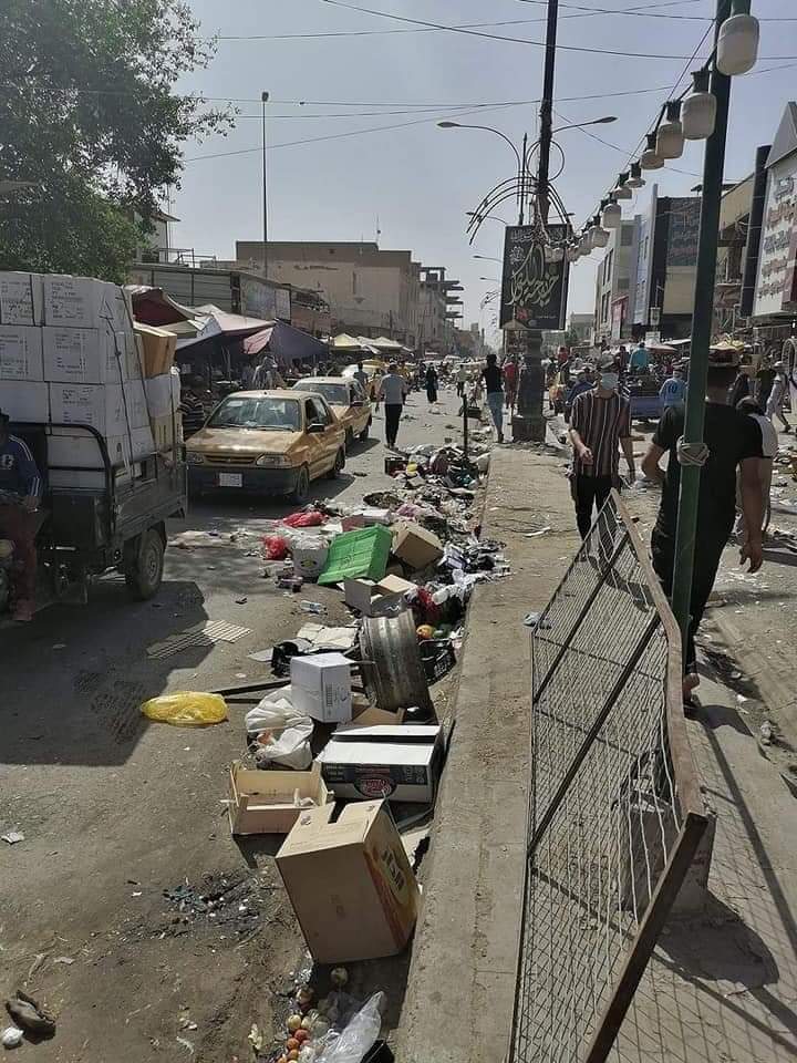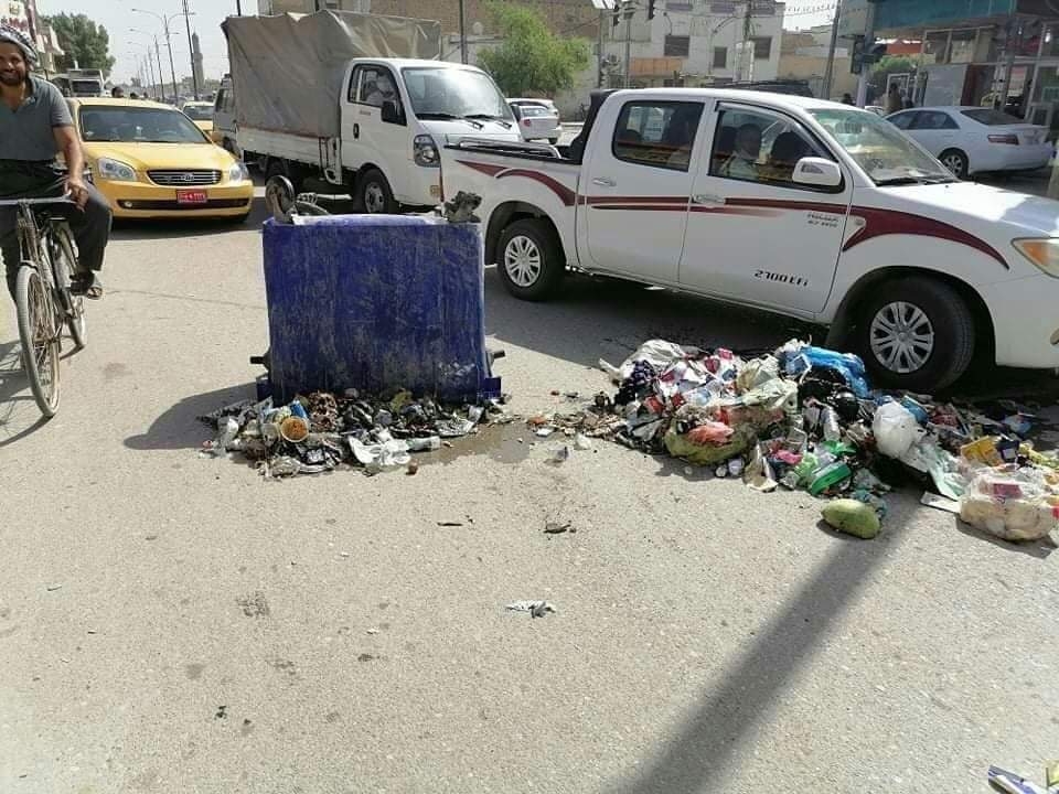 بالصور.. عمال النظافة ينثرون النفايات في شوارع الديوانية بدل جمعها