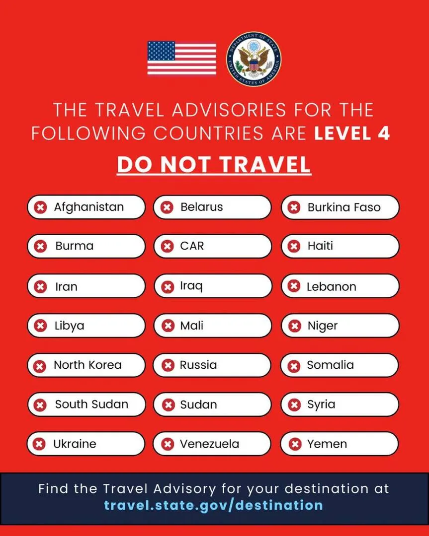 حيث أصدرت وزارة الخارجية الأميركية تحذيراً من المستوى الرابع لمواطنيها، ينبّه من السفر إلى هذه الدول.