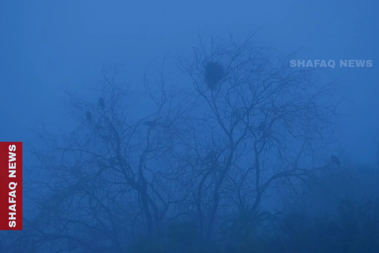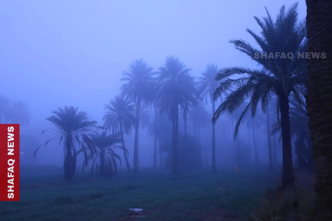 في ريف محافظة بابل، اكتسى كل شيء باللون الأزرق، الاغنام والنخيل والأهالي، حيث حول الضباب قرى كاملة لما يشبه لوحة قديمة.