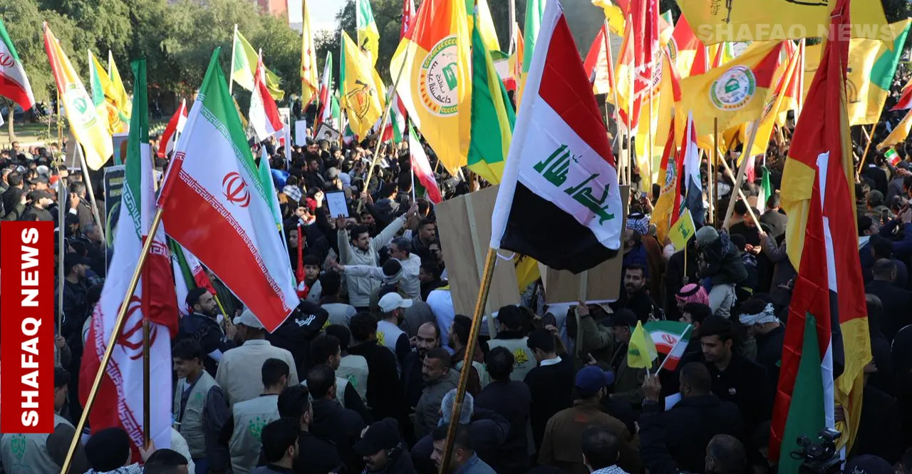 وقفة احتجاجية اليوم الجمعة أمام السفارة الإيرانية وسط العاصمة العراقية بغداد،