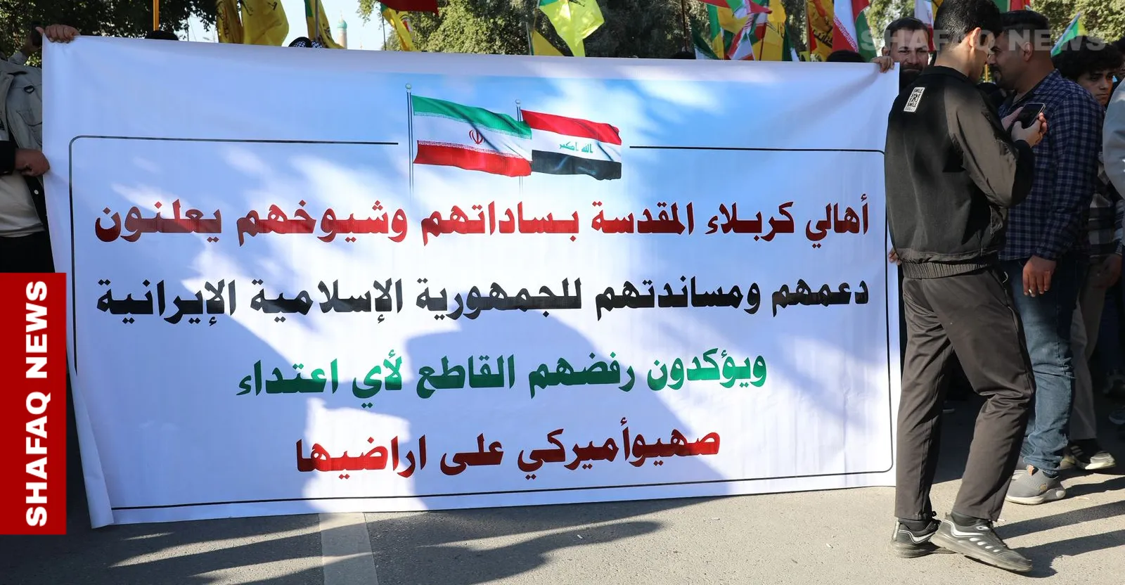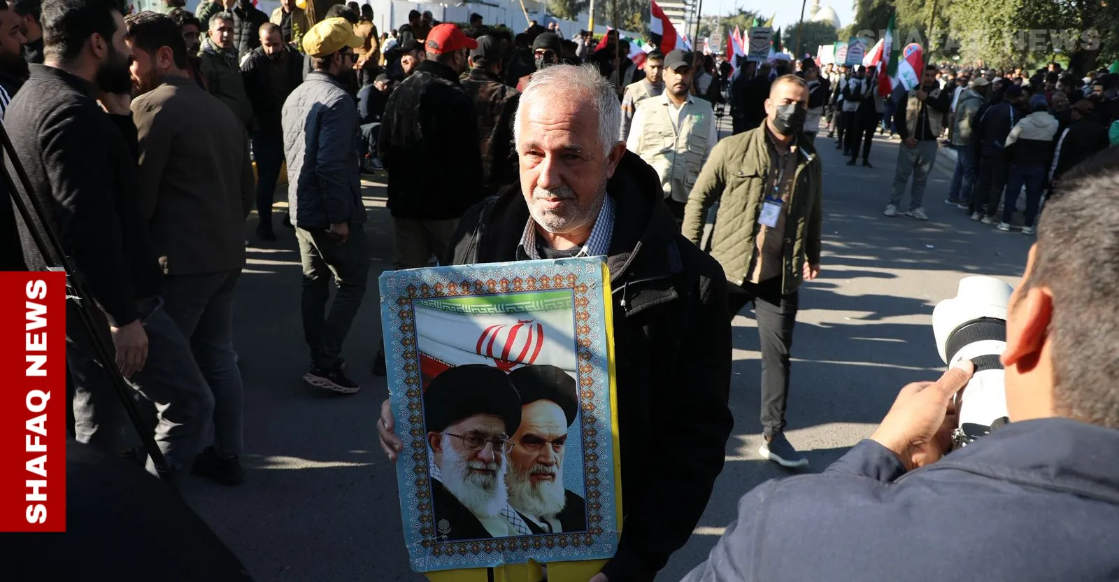 السعيدي لوكالة شفق نيوز، خلال مشاركته في وقفة احتجاجية أمام السفارة الإيرانية