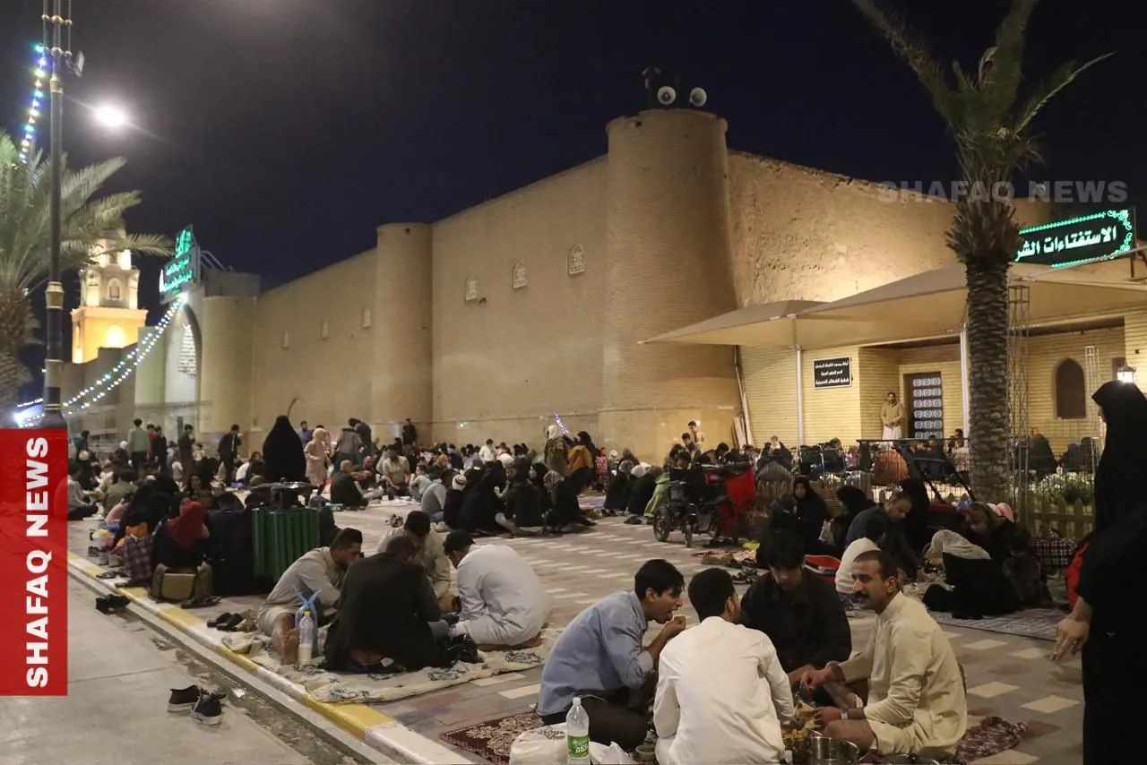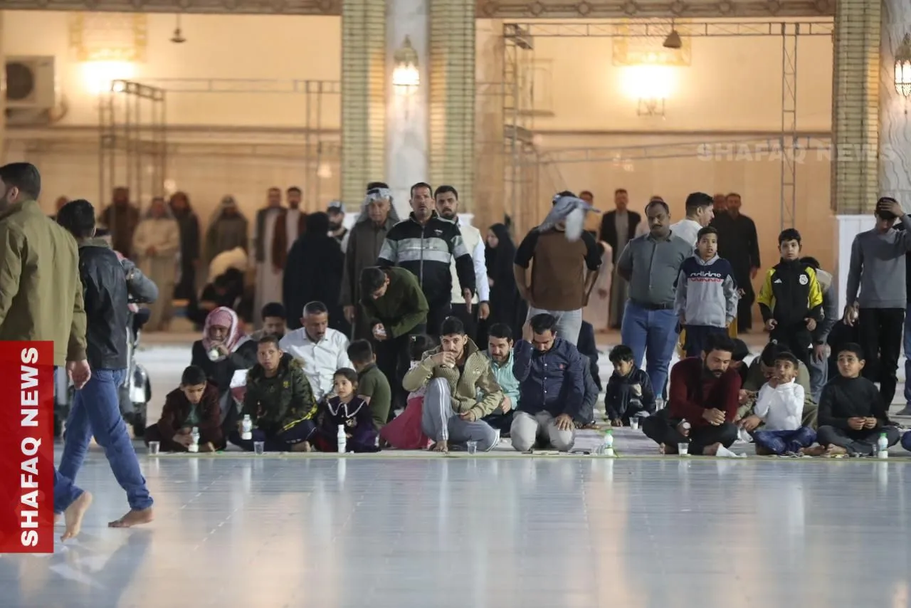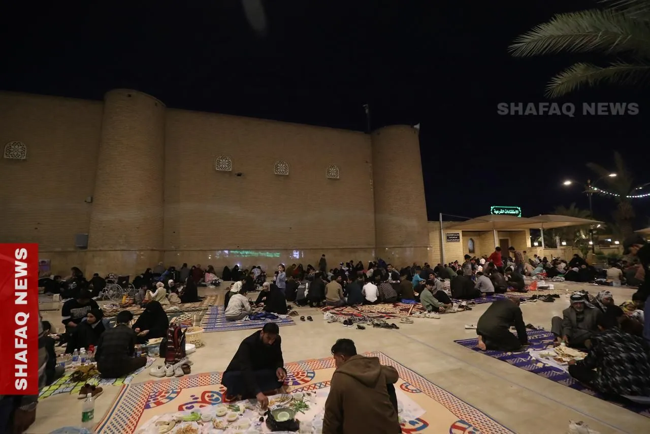 مسجد الكوفة يتزين بالزائرين في ليلة إفطار رمضانية (صور)