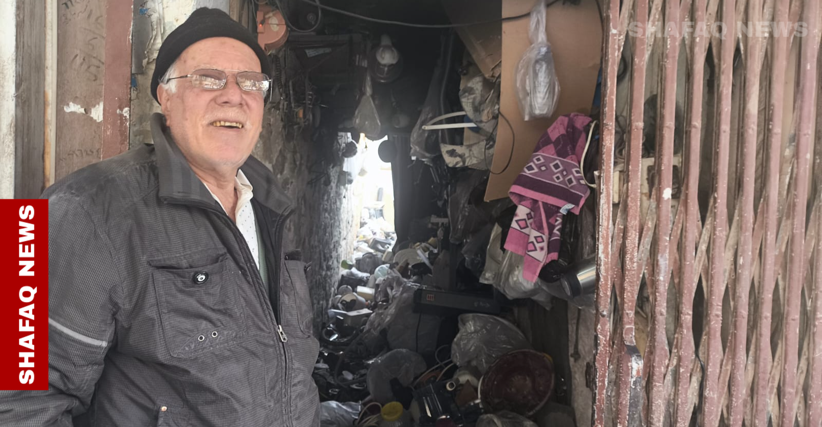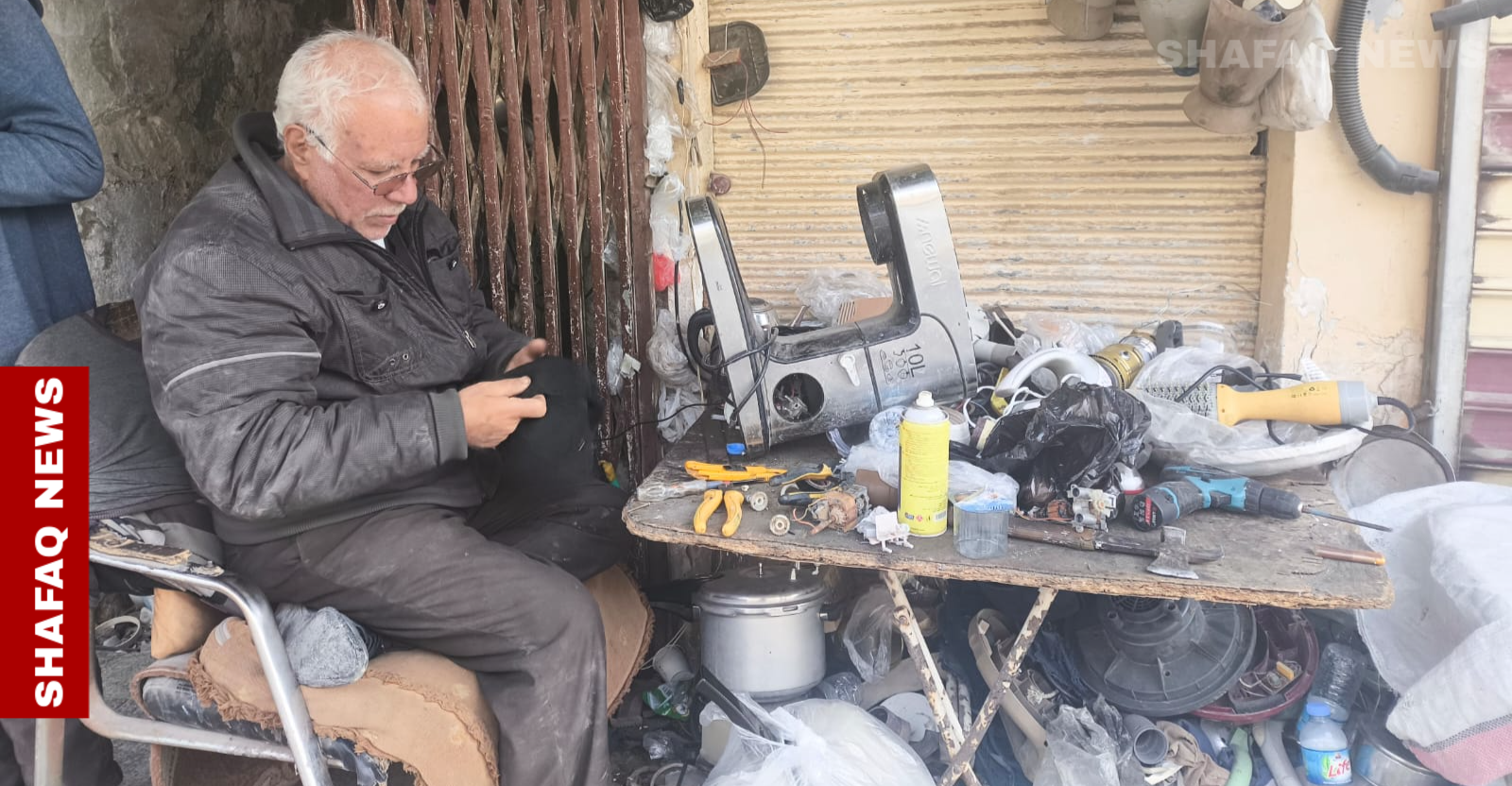 الذي تجاوز 70 عاما من عمره، وسط كومة من الأجهزة الكهربائية التي تنتظر أن تعود