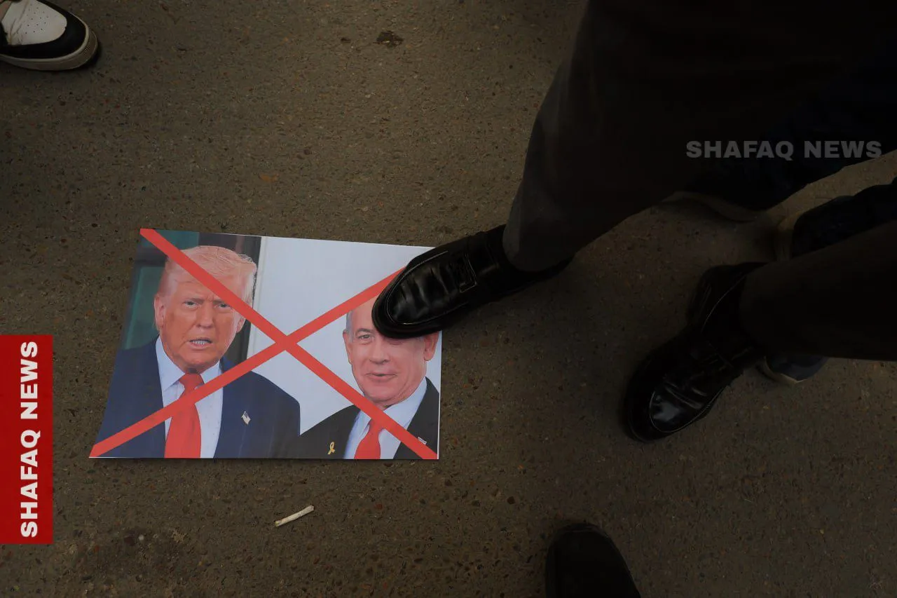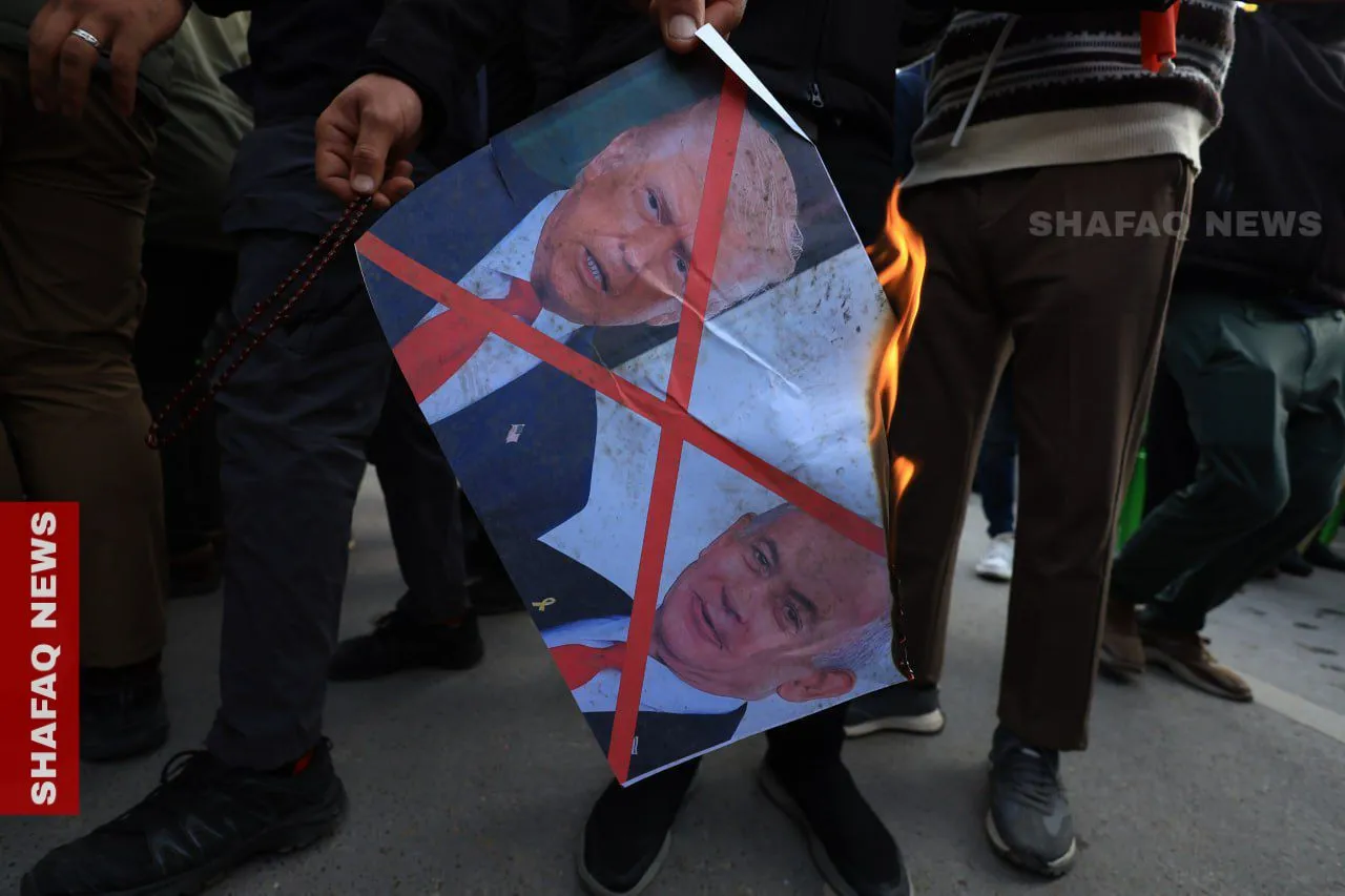 وتظهر الصور العشرات من أنصار الفصائل وهم يرفعون صور المرشد الأعلى الإيراني علي خامنئي، ورايات تمثل الفصائل، وكذلك صور للرئيس الأميركي دونالد ترمب، رفقة رئيس الوزراء الإسرائيلي بنيامين نتنياهو، موضوع عليها علامة "إكس" للدلالة على رفضهم.