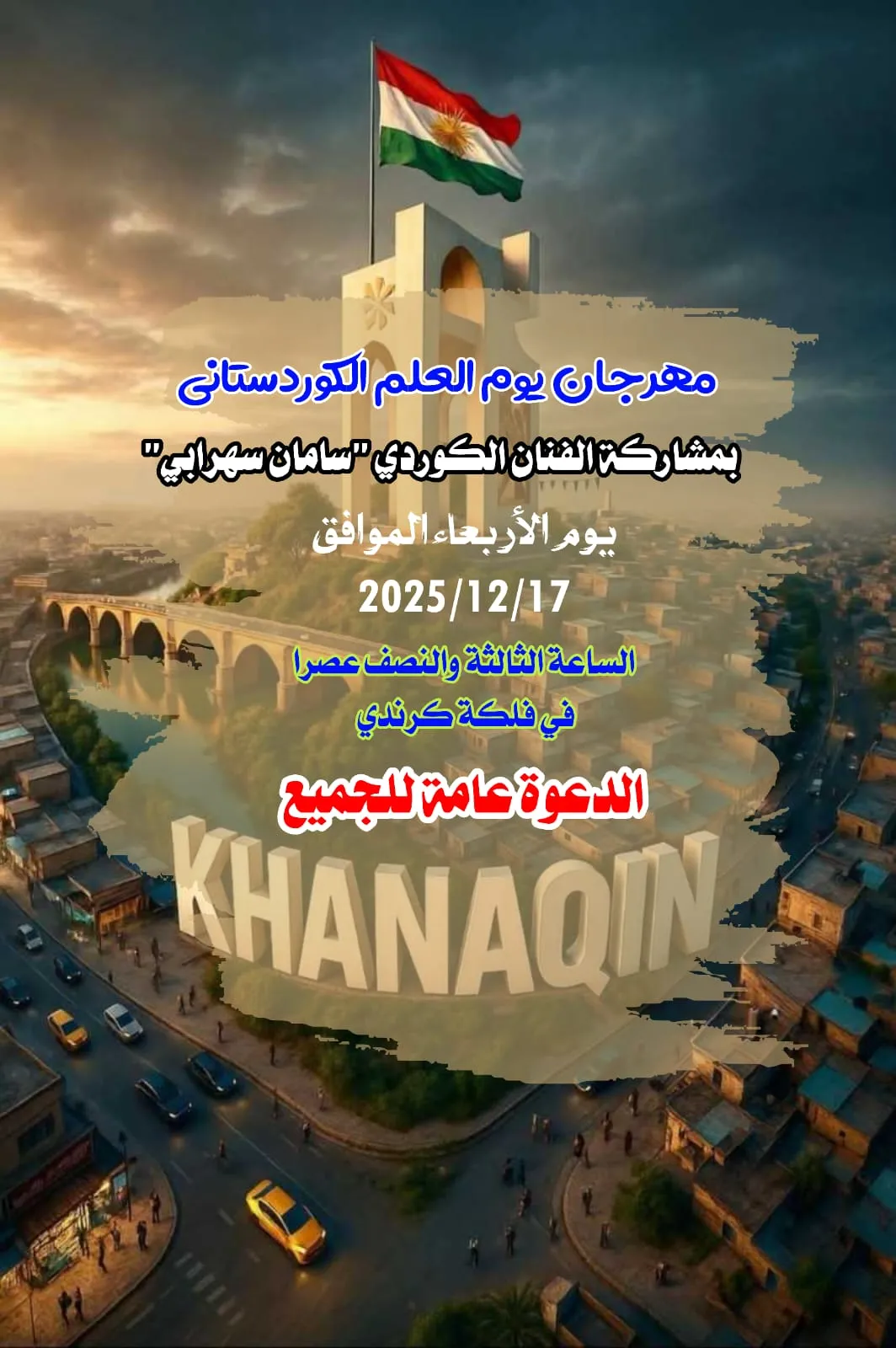 تستعد مدينة خانقين، يوم غد الأربعاء الموافق السابع عشر من كانون الأول الجاري، لإحياء مهرجان يوم العلم الكوردستاني بمشاركة واسعة من مختلف أطياف ومكونات المدينة.