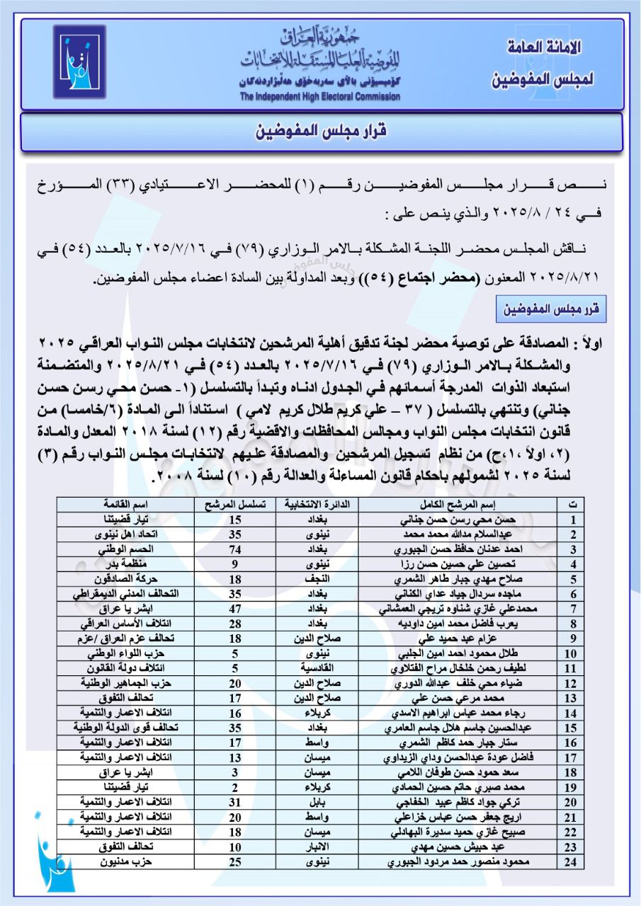 The move adds to more than 500 individuals already barred in recent days for reasons ranging from criminal records, corruption allegations, to breaches of de-Baathification procedures and incomplete documentation, including missing educational certificates.
