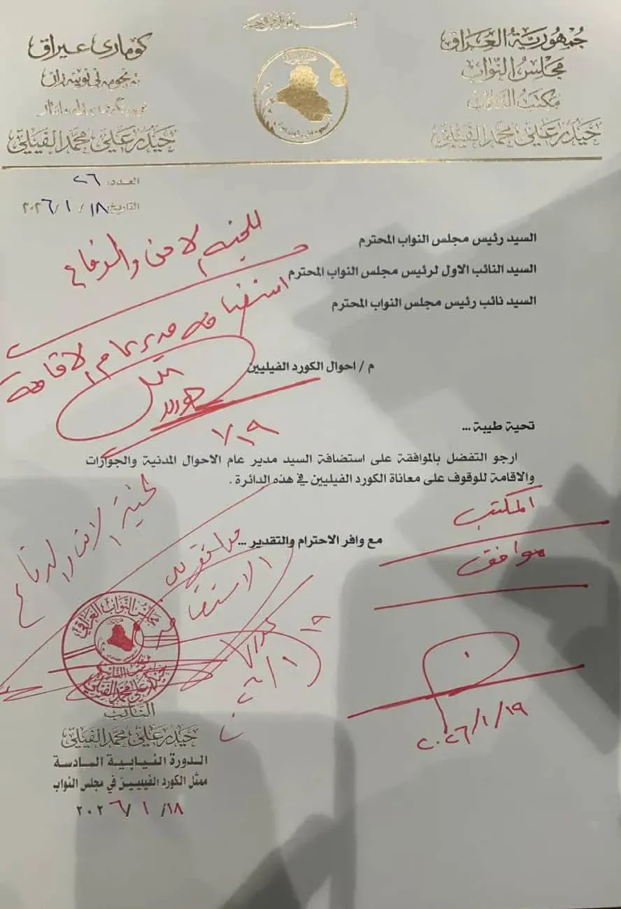 Speaking to Shafaq News, MP Haider Ali Abu Tara, the Feyli Kurdish quota representative, said the Council of Representatives authorized a formal hearing. The session will scrutinize administrative and legal barriers across nationality, civil status, and residency services and seek actionable remedies.