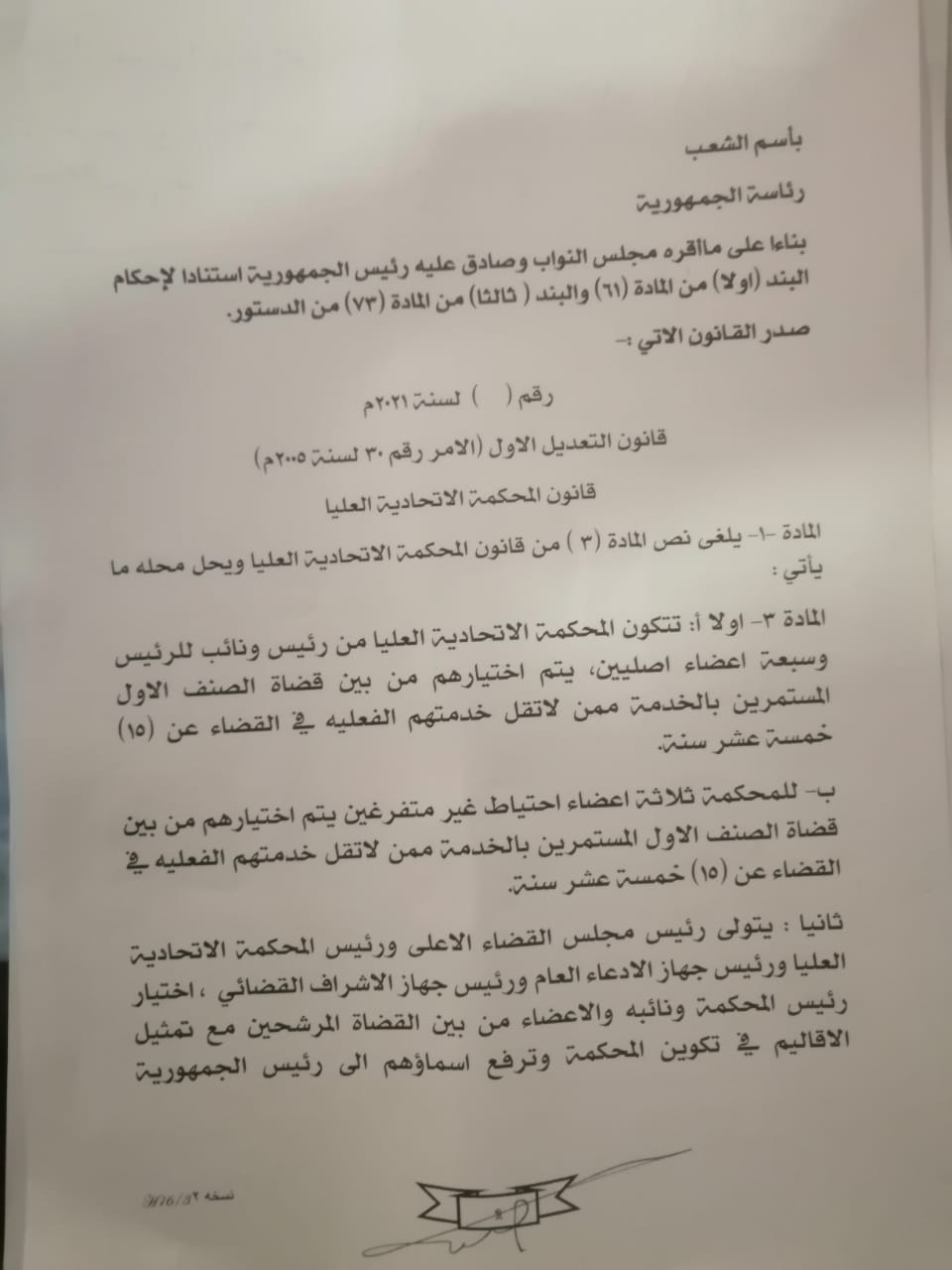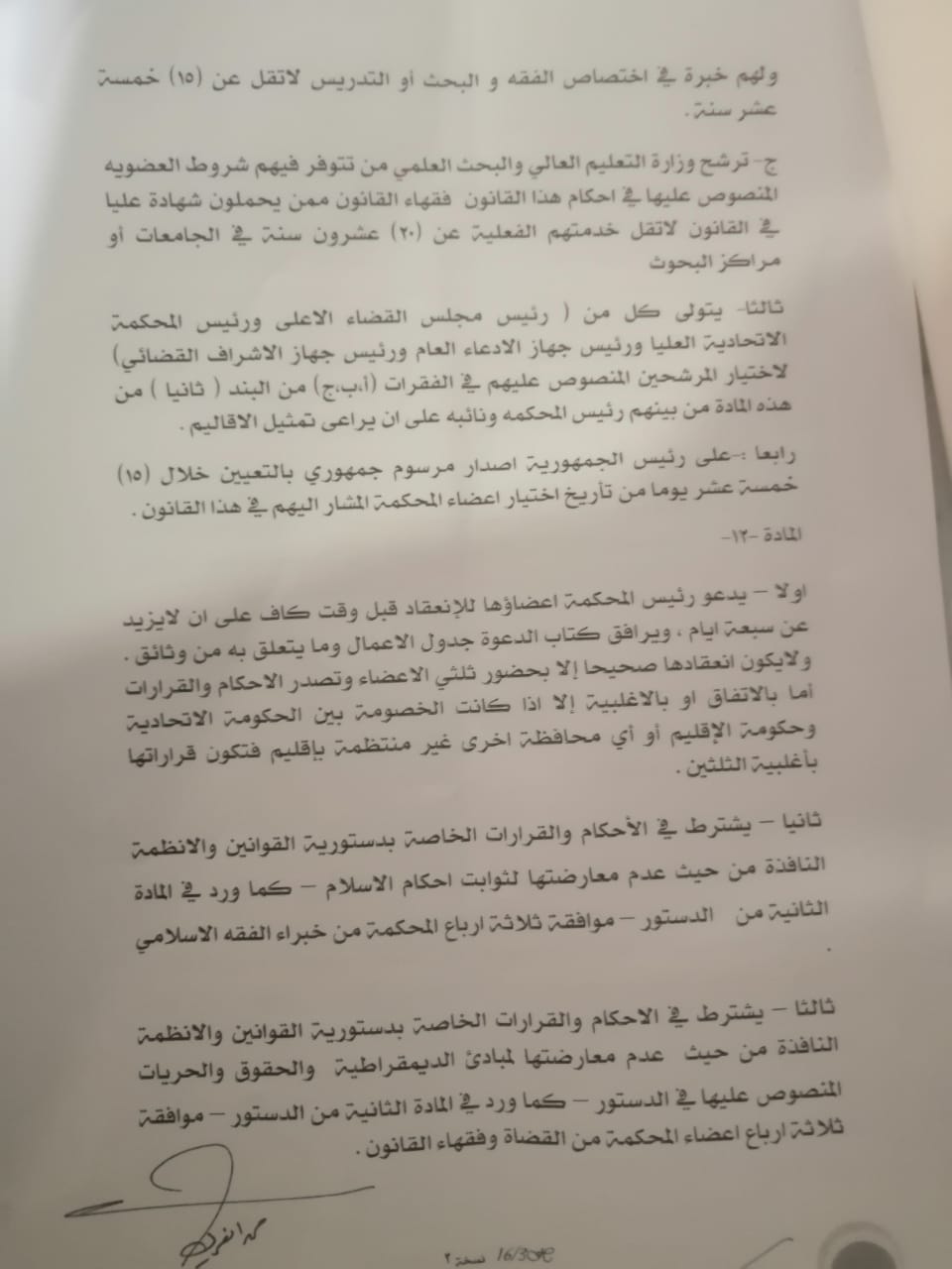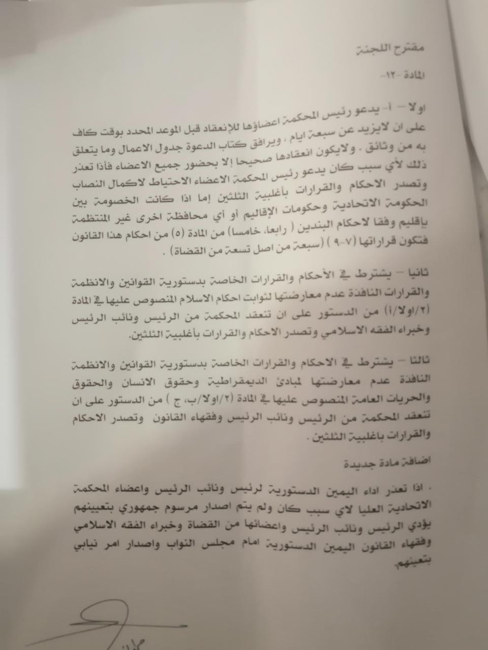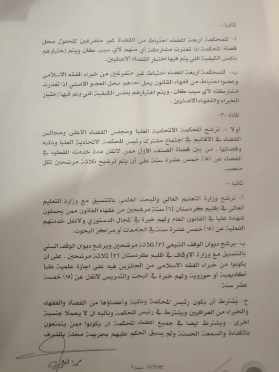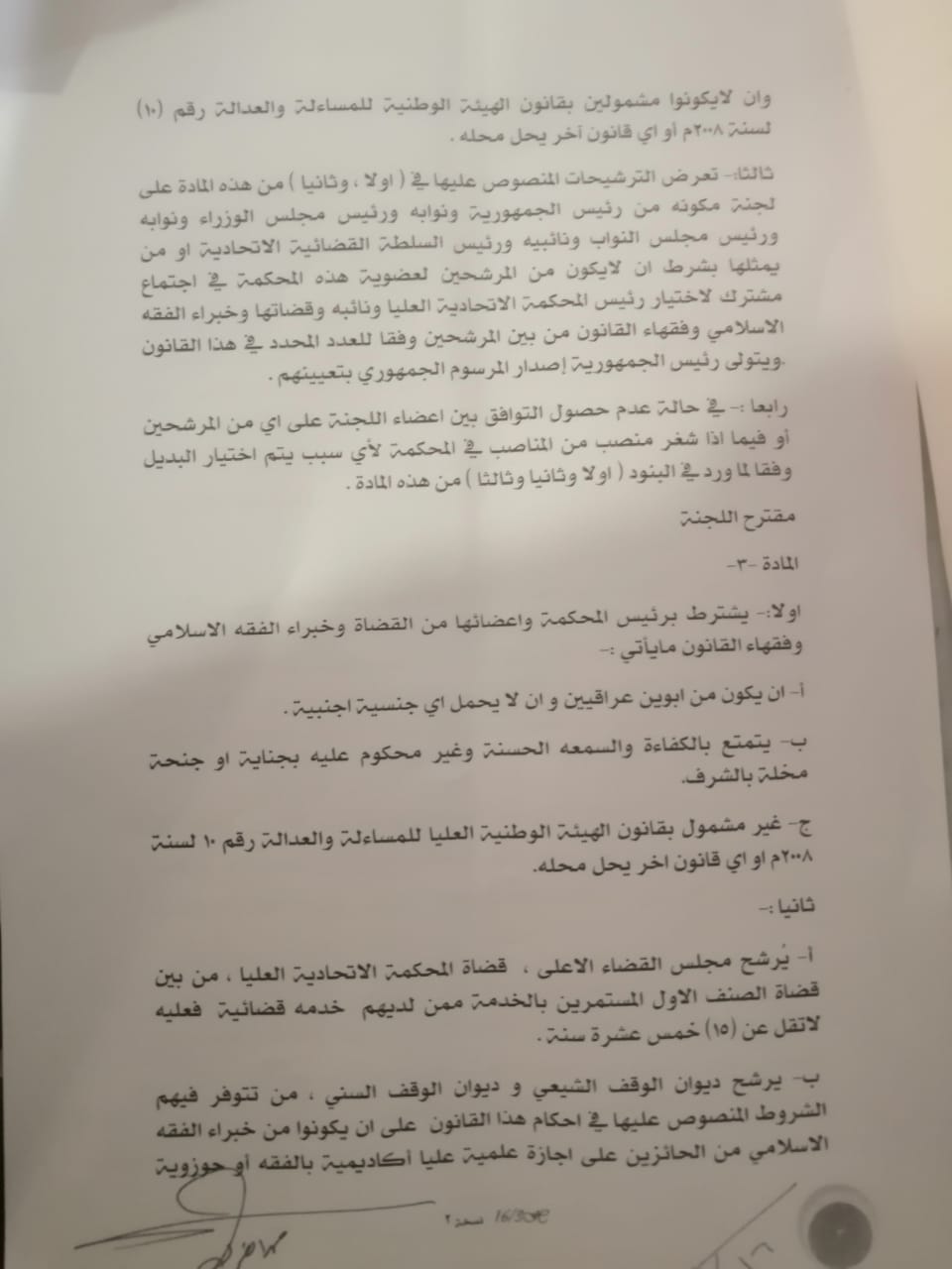 Shafaq News / Shafaq News Agency obtained a copy of the document of the amendments made by the Iraqi parliament to the Federal Supreme Court law.