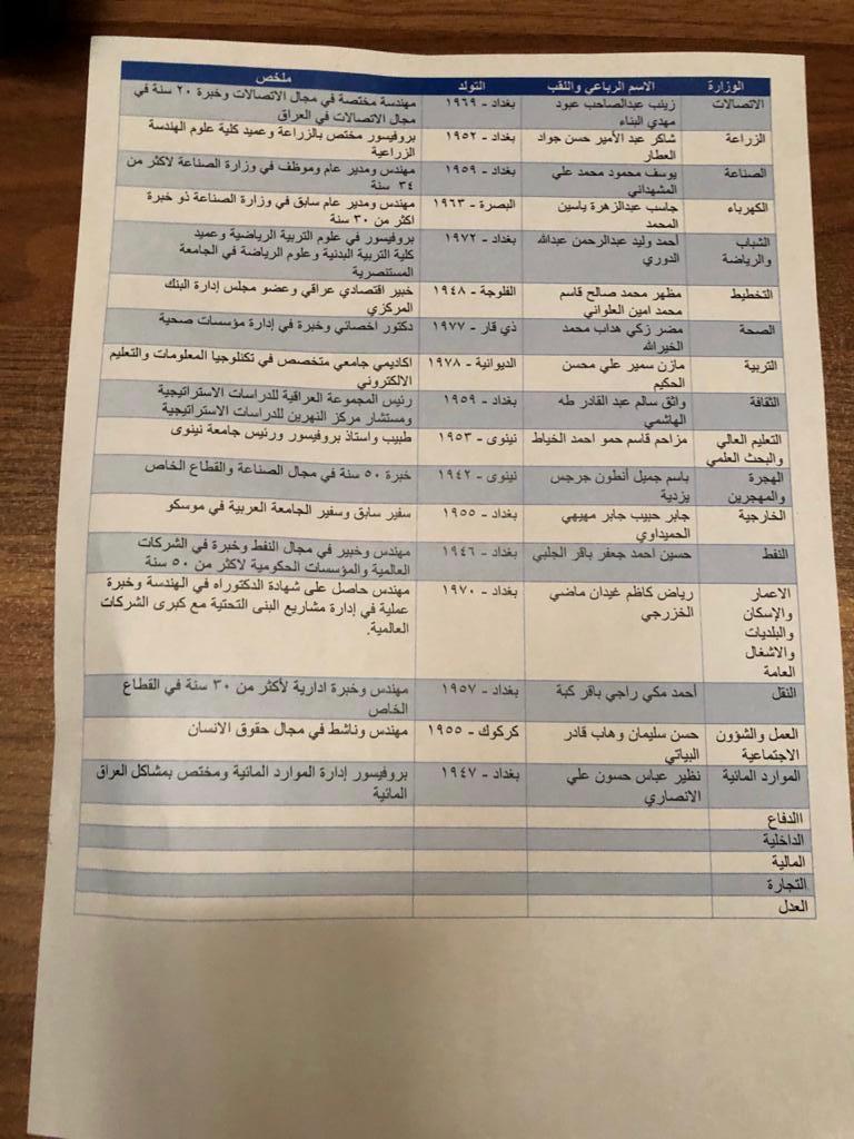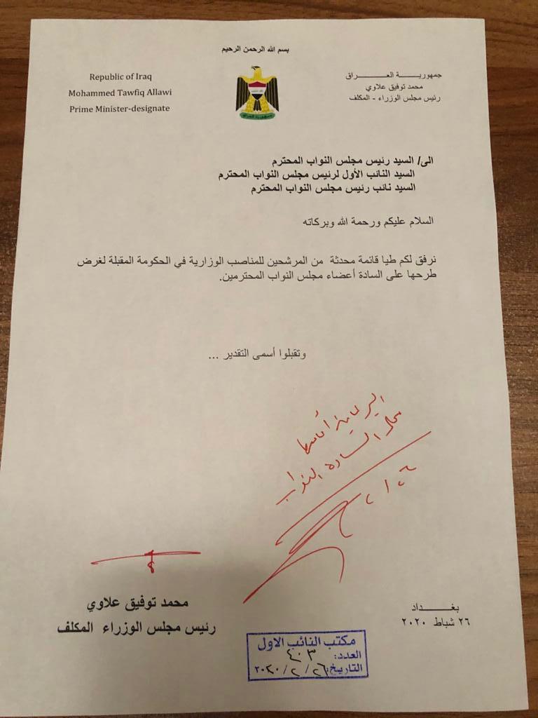 Shafaq News / Prime Minister-designate Muhammad Allawi presented on Thursday a list of candidates for ministerial positions in the new government.