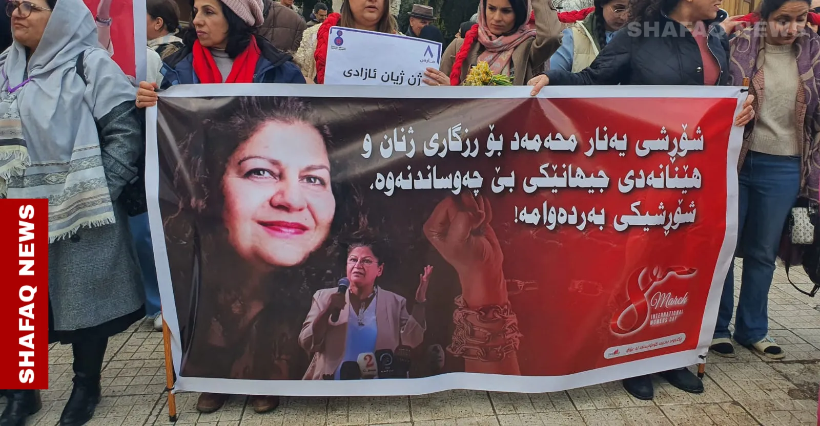 On Sunday, activists marked International Women’s Day with a march in front of the Al-Sulaymaniyah provincial administration building, in the Kurdistan Region of Iraq, pledging to continue the path of the late activist Yanar Mohammed, Shafaq News correspondent reported.