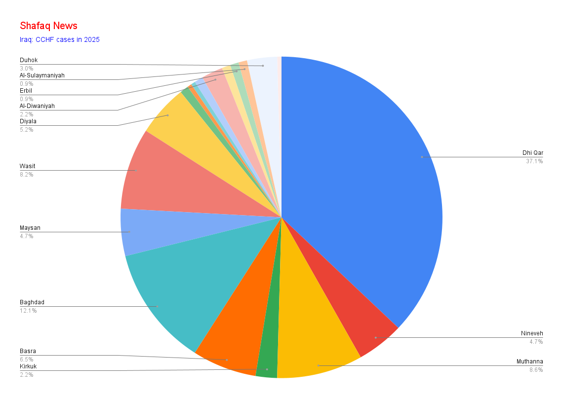 Based on data from health officials obtained by Shafaq News, the Kurdistan Region has recorded 12 CCHF cases since the start of 2025, including one death.