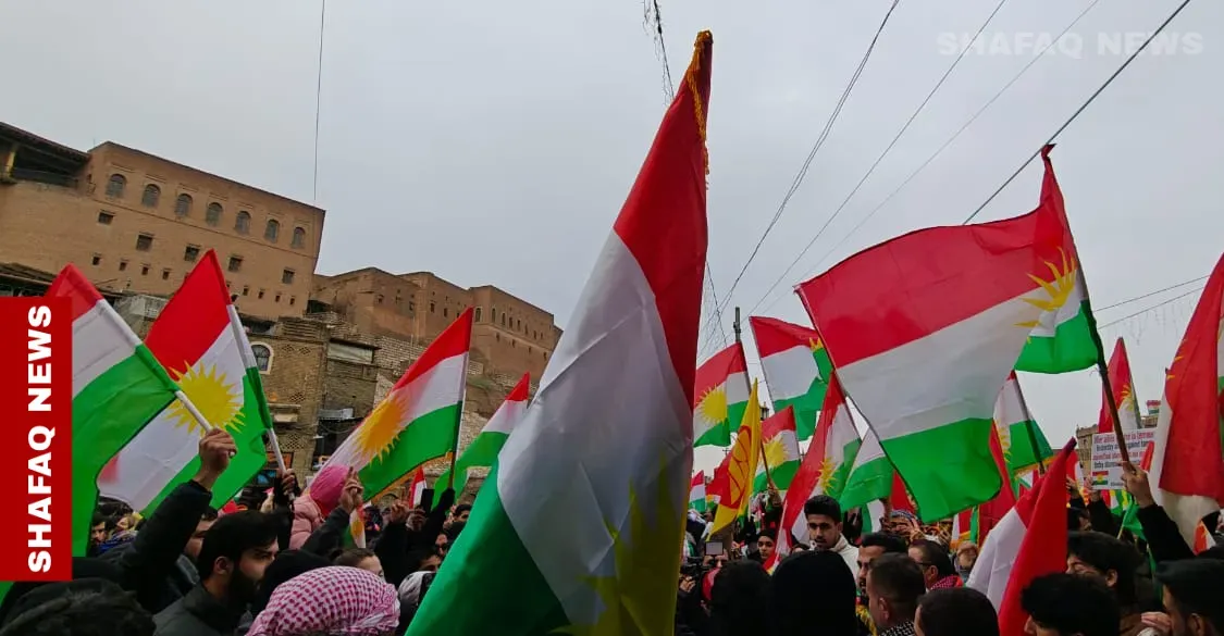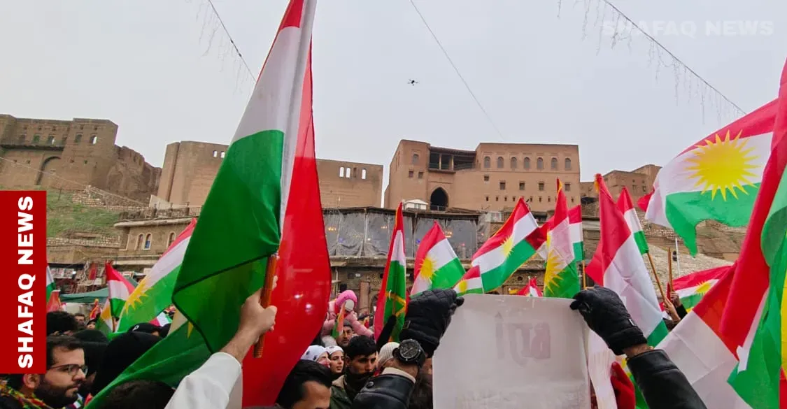 Dozens of Kurds gathered near the ancient citadel in the Kurdistan Region’s capital Erbil on Friday, waving Kurdistan flags and chanting calls for the protection of Kurds in Syria as Damascus-aligned forces advanced further into northeastern parts of the country.