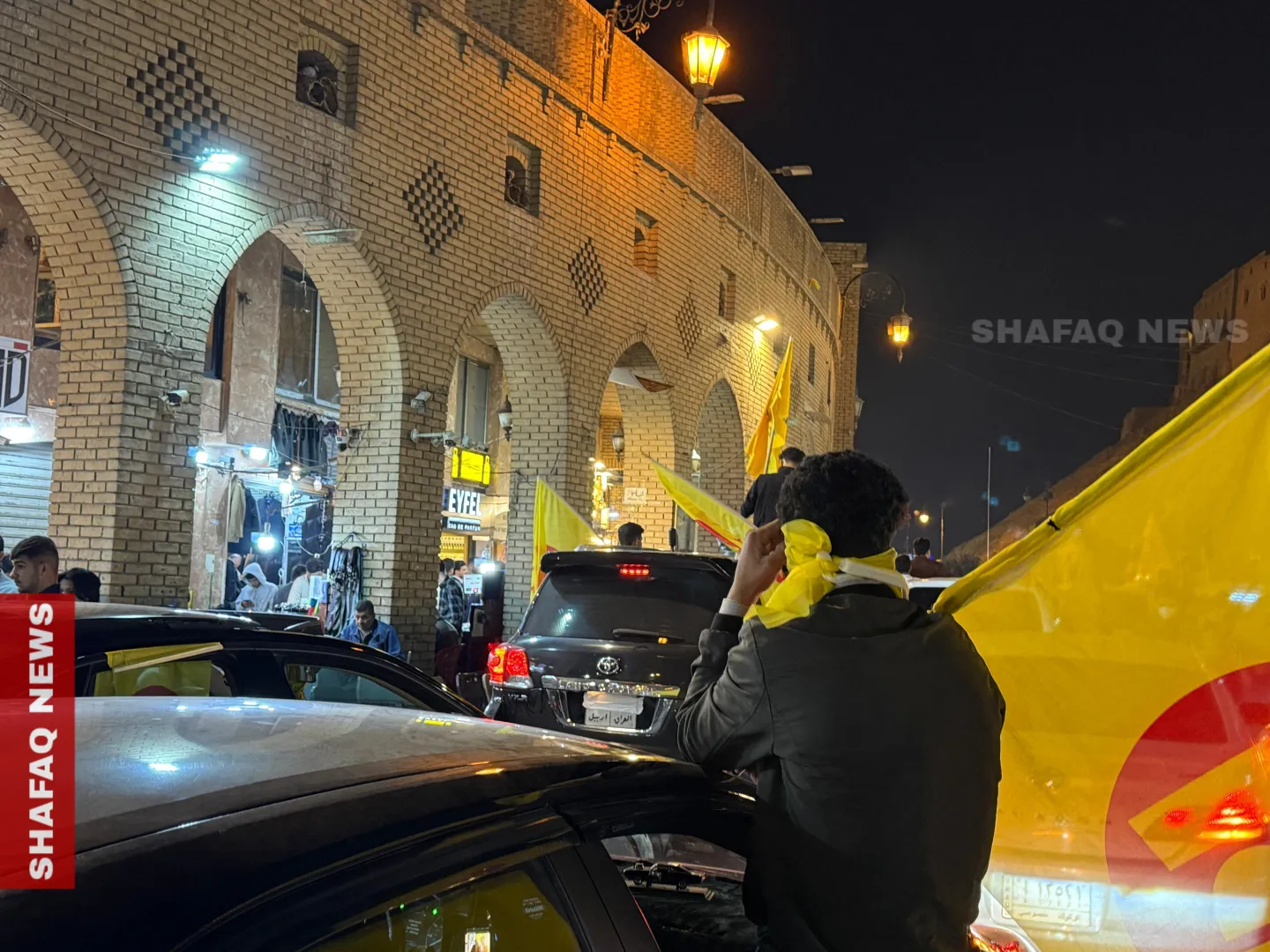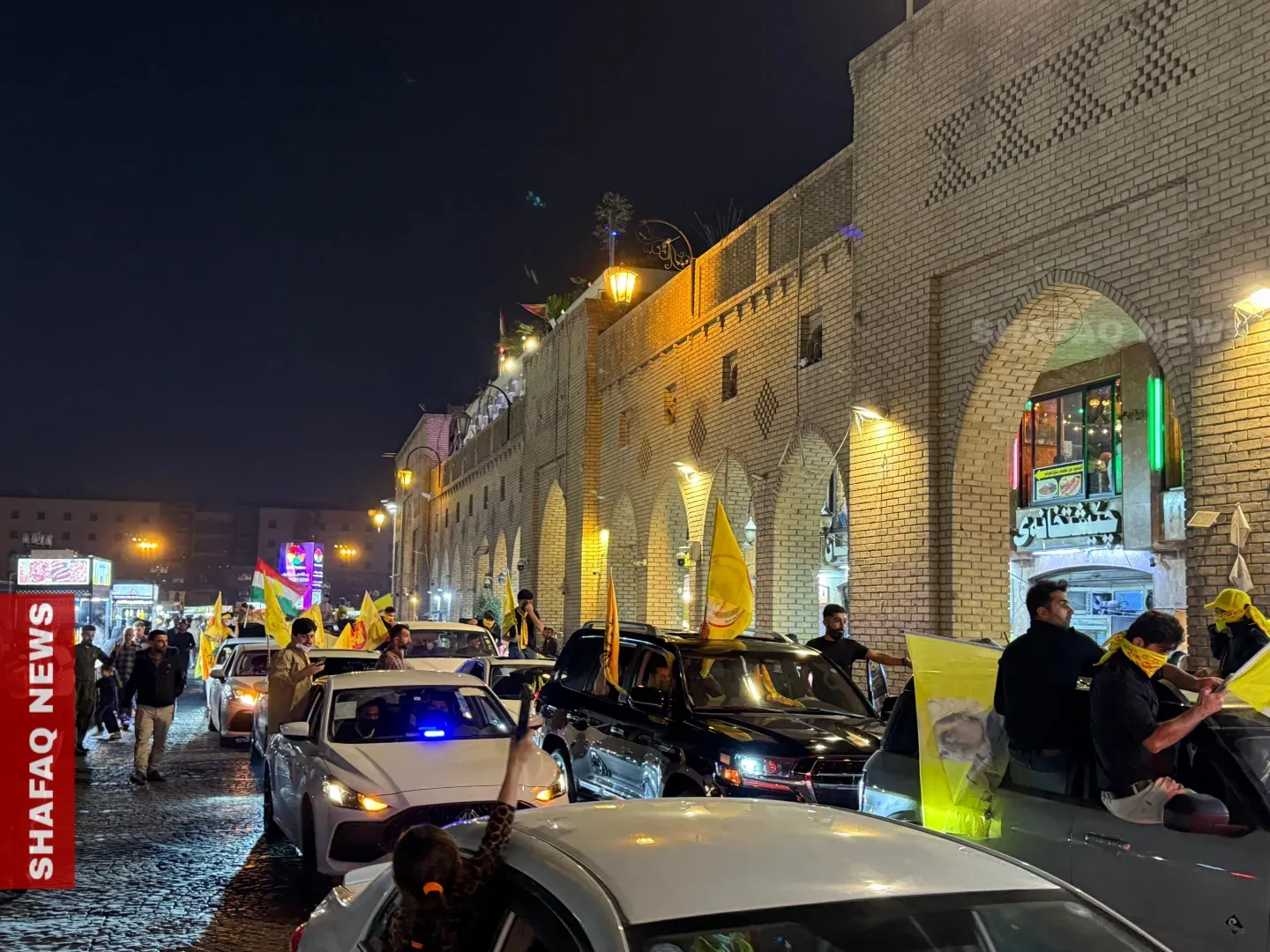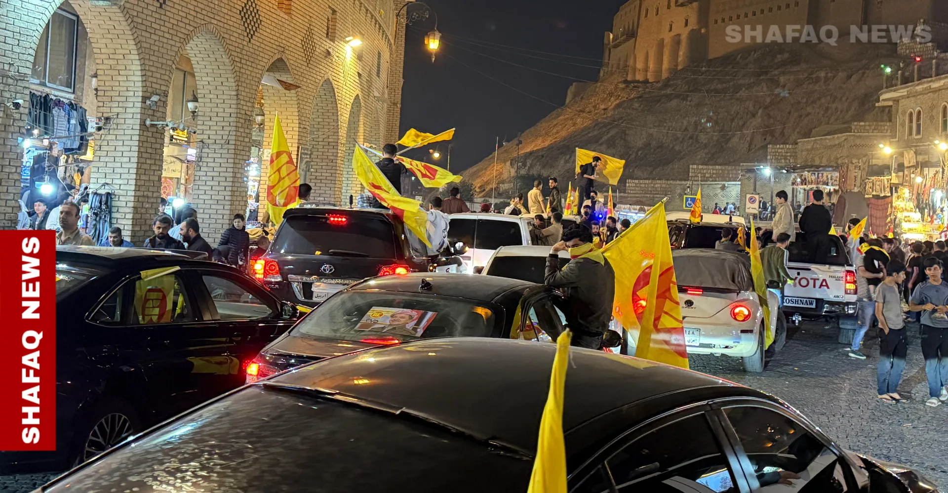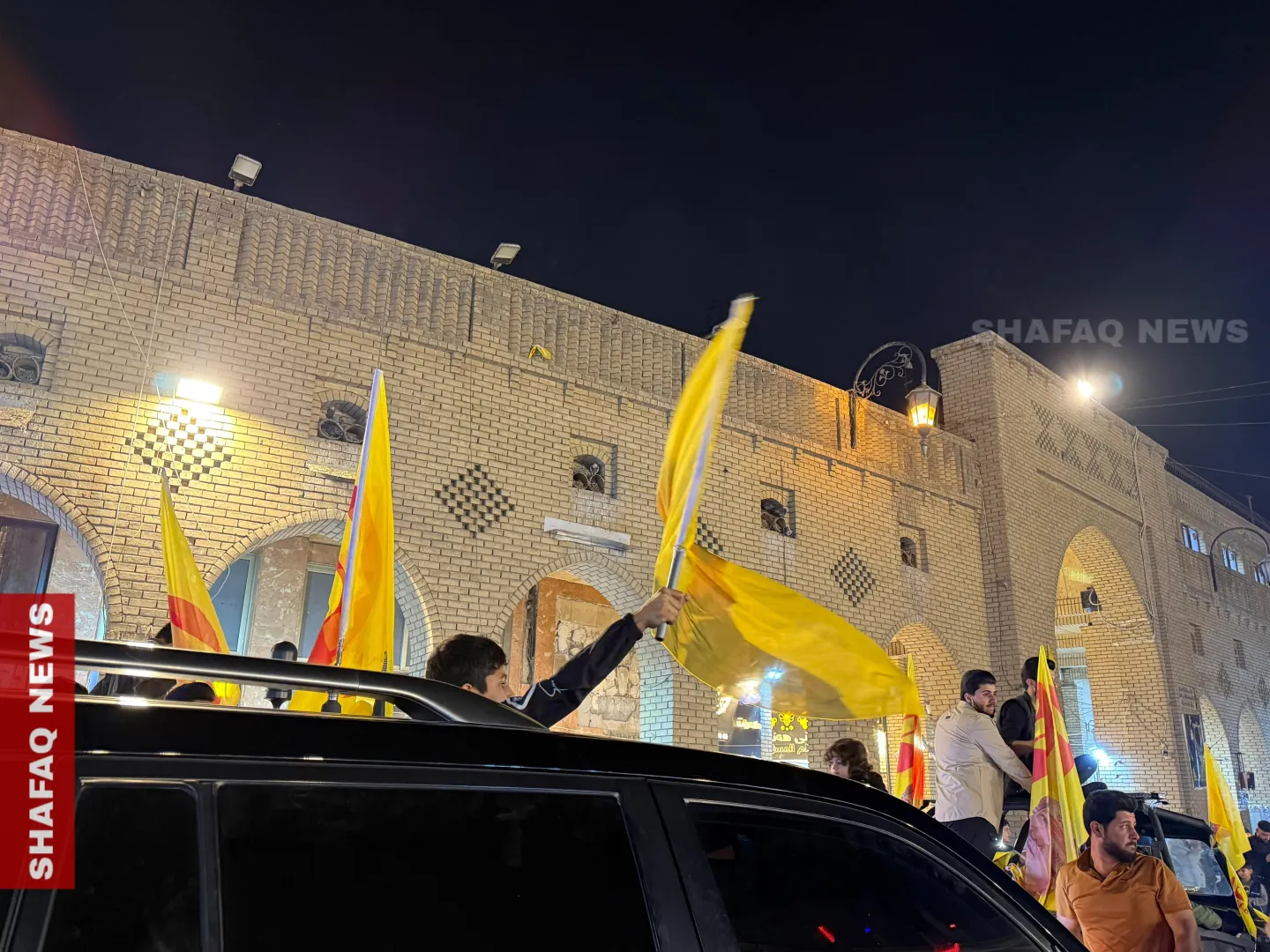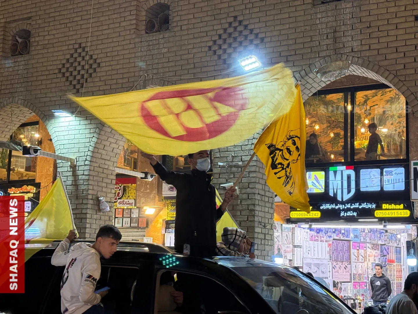 Soon after the results were announced, thousands of KDP supporters filled the streets of Erbil to celebrate. Crowds gathered near the city’s Citadel and central market, waving yellow party flags and holding pictures of KDP leader Masoud Barzani. Motorcades moved through the streets, horns blaring as supporters displayed banners with the party’s red-and-yellow emblem.