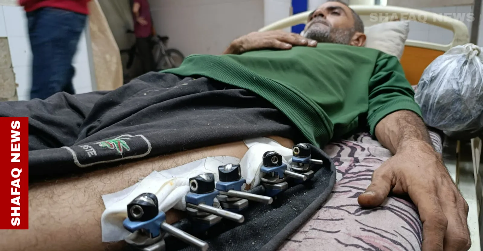 Al-Tawashi was shot last August in the ankle while heading toward the Zikim crossing to find food for his family amid severe shortages. He was rushed to Al-Shifa Hospital, where he stayed for nearly 50 days before being transferred to Al-Aqsa Martyrs Hospital. “No facility has been able to treat my case or even provide a joint replacement,” he told Shafaq News.