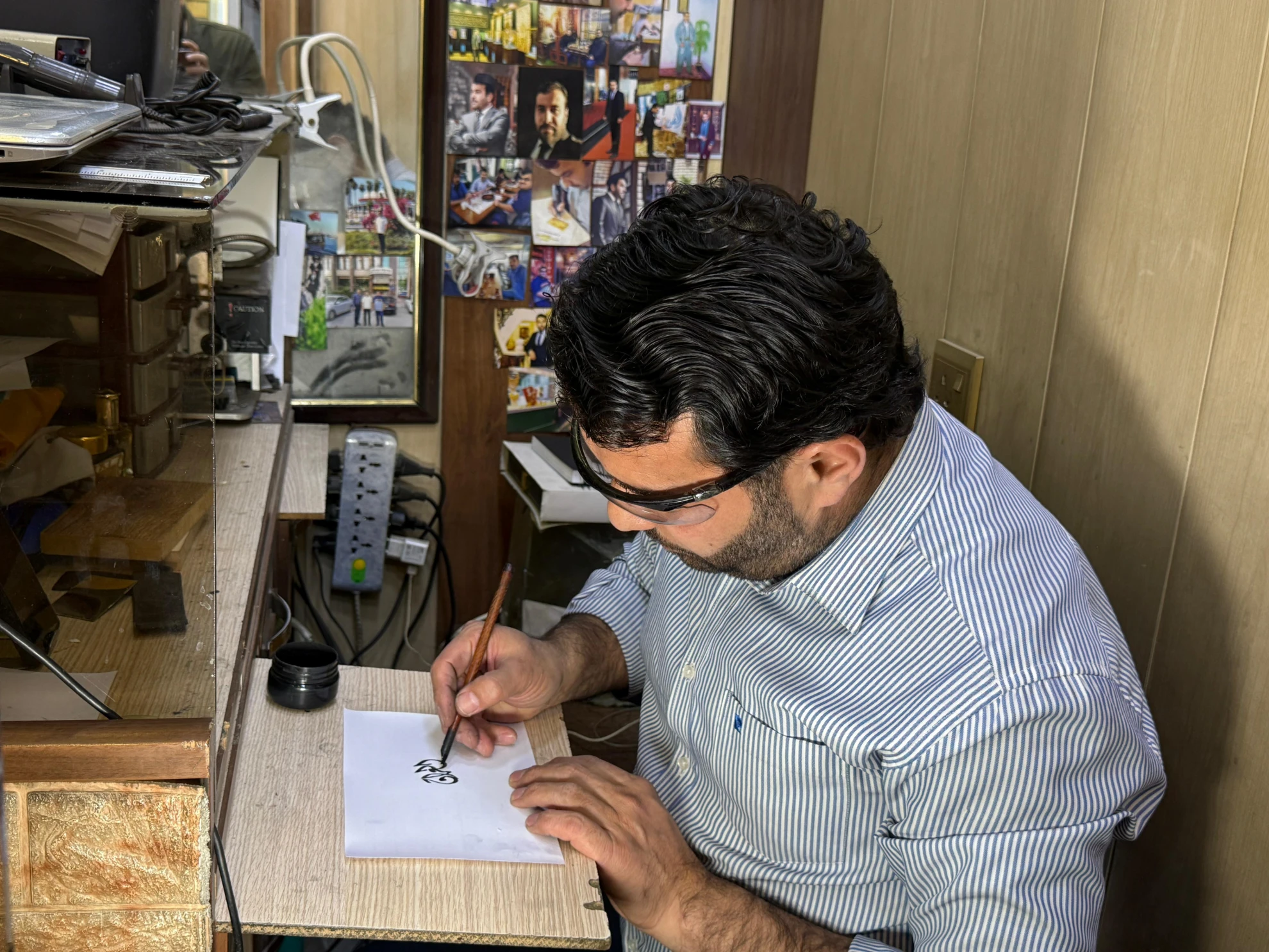 This type of work appeals to a specific group rather than a broad market. Most of his clients are “intellectuals and people interested in the arts,” who understand the value of handmade work and the beauty of Arabic calligraphy.