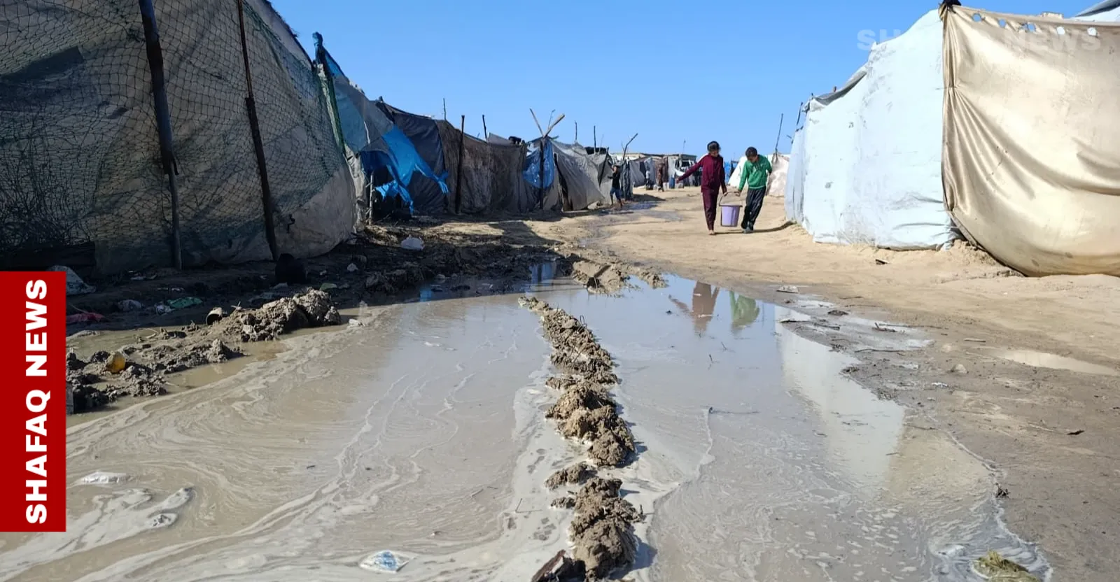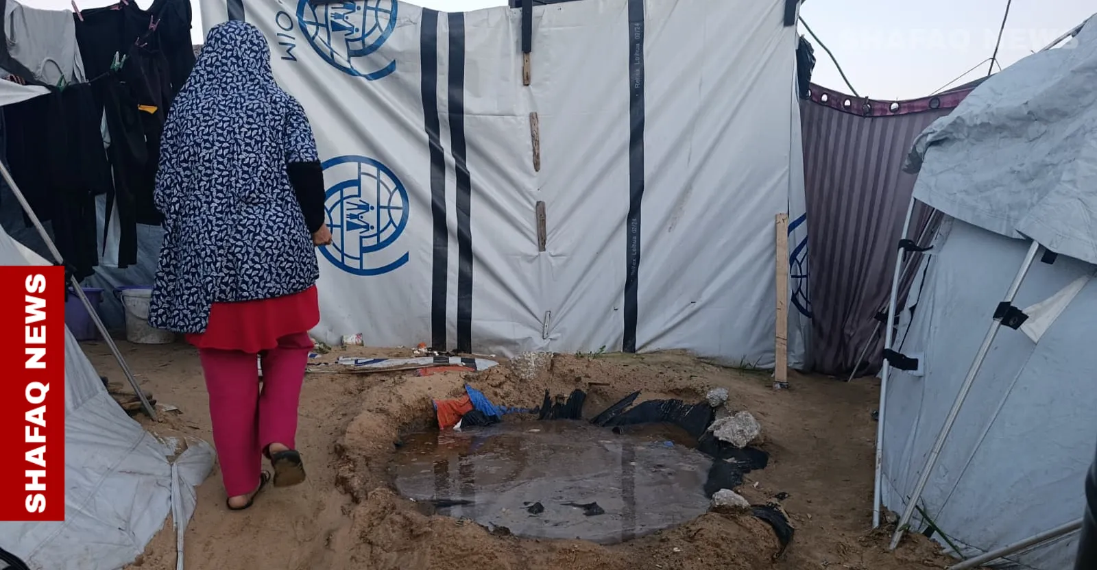 Umm Bahaa Issaid, 60, stood beside a sewage pit dug just steps from the entrance of her tent to dispose of wastewater, her voice heavy with fear. “I worry that I could fall into it at any moment,” she told Shafaq News. She recalled, with visible distress, the moment her 11-year-old granddaughter slipped into the pit, before neighbors and young men rushed to pull her out.