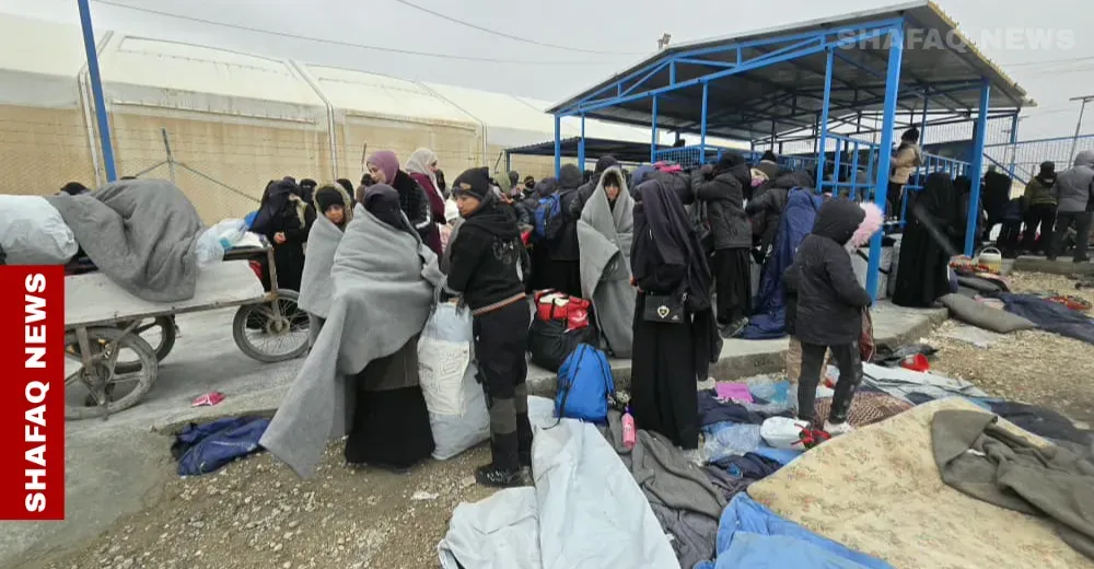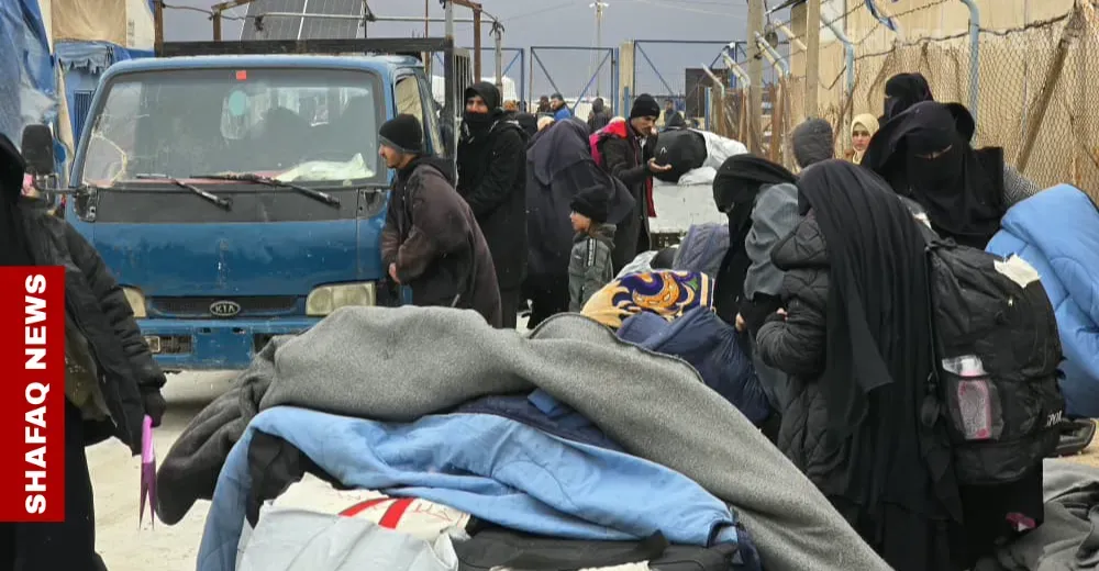 Shafaq News correspondent reported that more than 20 Iraqi buses gathered outside the camp to transport the returnees toward Iraq via the Al-Yarubiyah border crossing east of Hasakah. The convoy was escorted by US armored vehicles, with American helicopters flying overhead as part of security measures to ensure a safe transfer.
