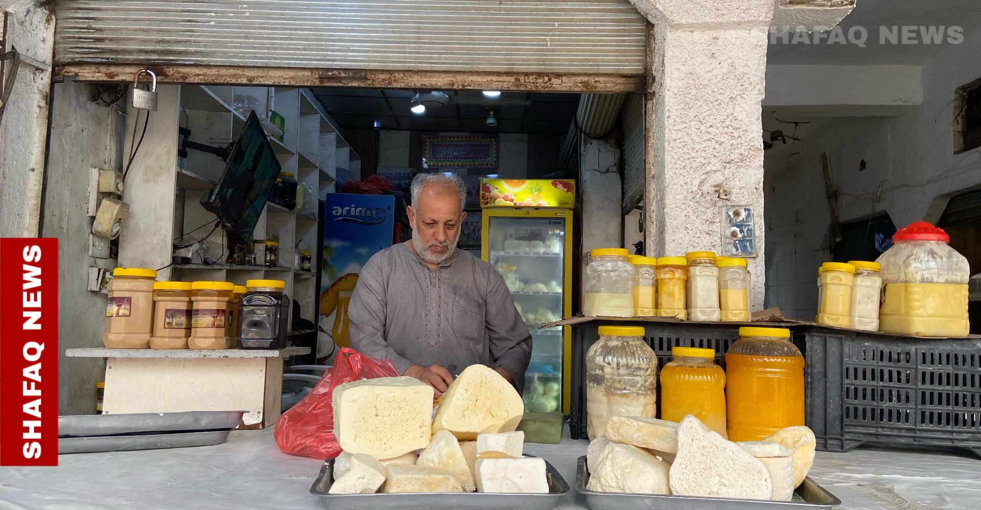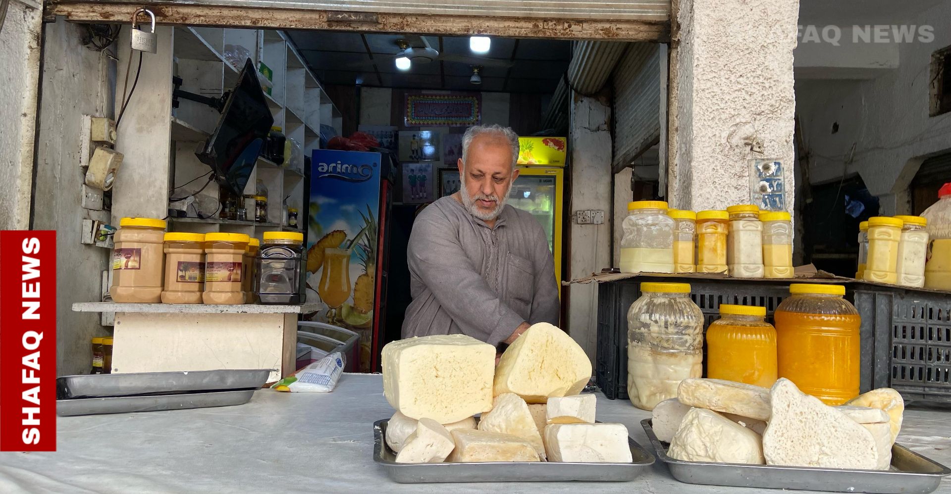 Surrounded by jars of clarified butter and blocks of cheese, 40-year-old vendor Abdul Alim Abu Nour quietly pursues a mission: preserving the authentic flavors of Iraq’s traditional cuisine.