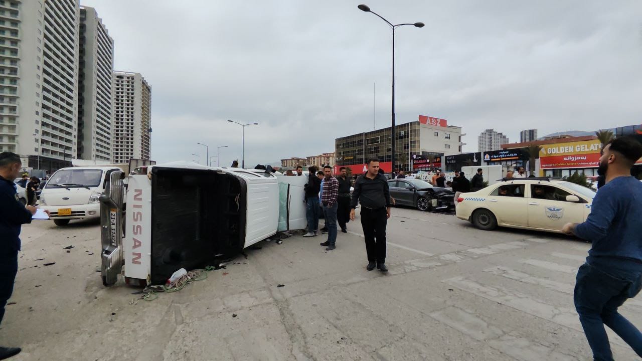 سلێمانی.. لەیەکەوداین لەناوەین 4 ماشین لە ئەنجام دوو ماشین پلیەن (وینە)